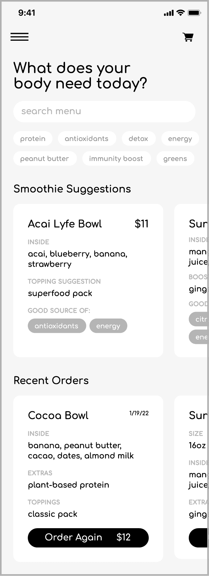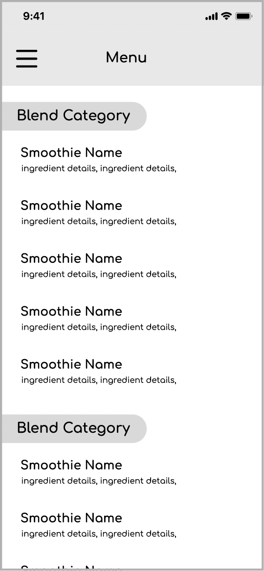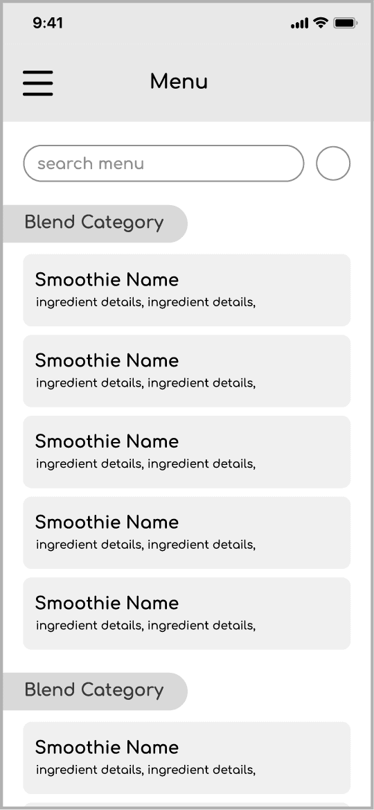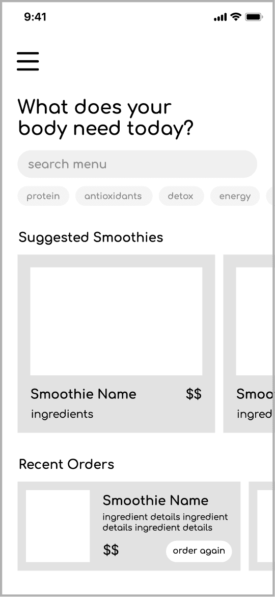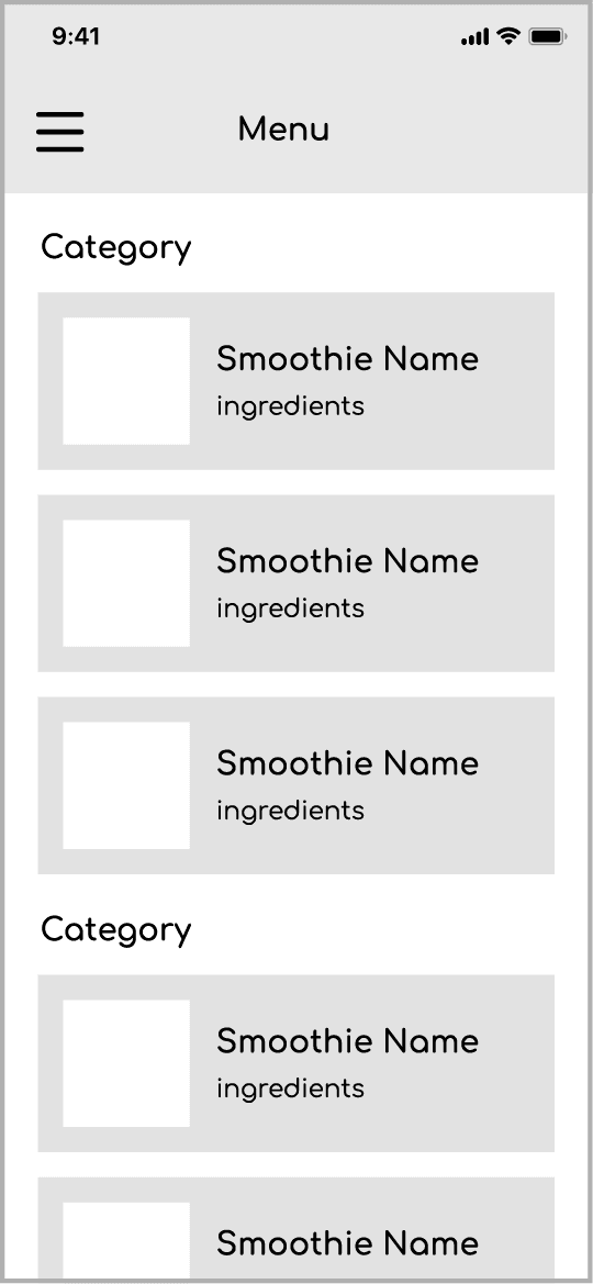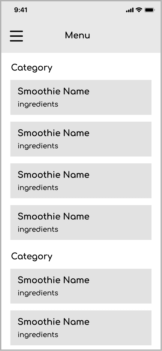 Mobile ordering app for local smoothie business