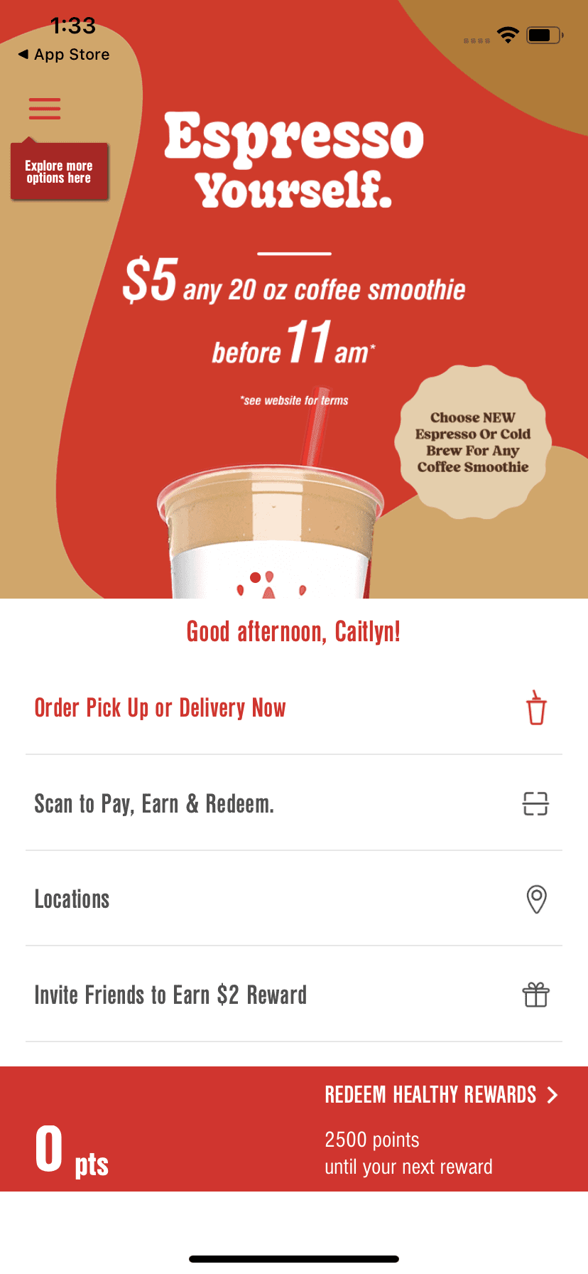 Customers can track rewards, receive special offers, and quickly order.